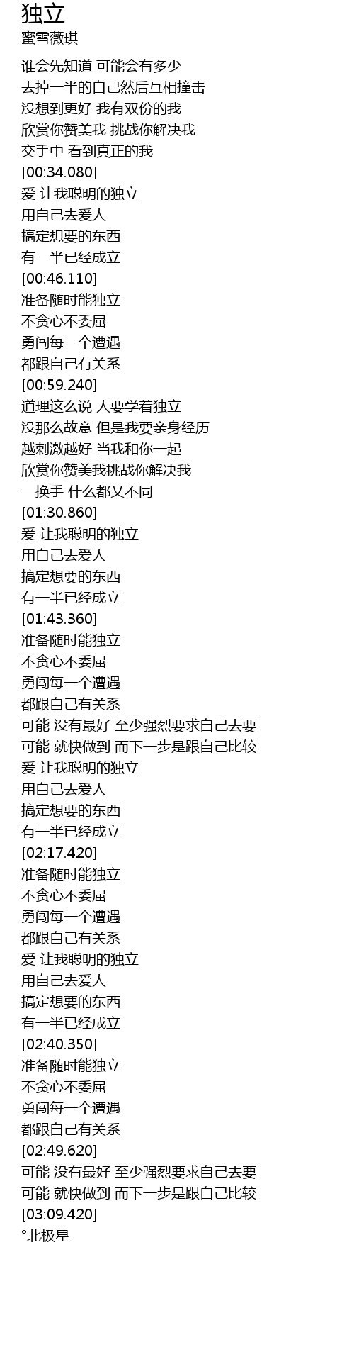 | [00:34.460] | ài ràng wǒ cōng míng de dú lì |