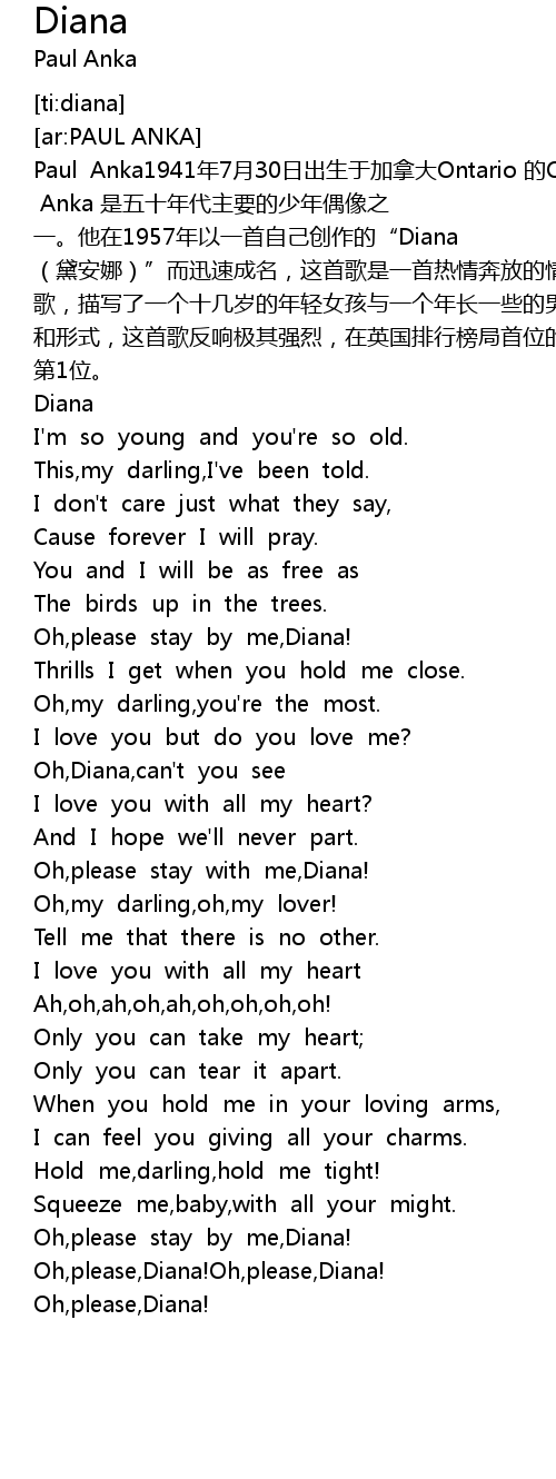 | [00:34.708] | Oh,please stay by me,Diana! |