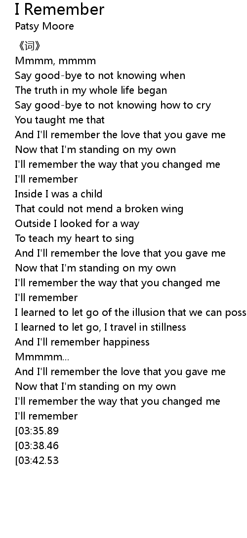 | [03:53.60][03:42.53][03:30.02] | I' ll remember |