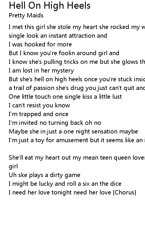 But she's hell on high heels once you're stuck inside her web she leaves you in a trail of passion she's drug you just can't quit and your mind is in a haze |
