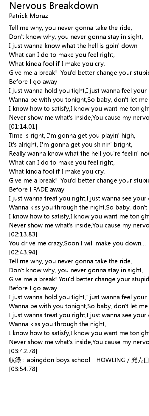 | [01:07.23] | Never show me what' s inside, You cause my nervous breakdown |