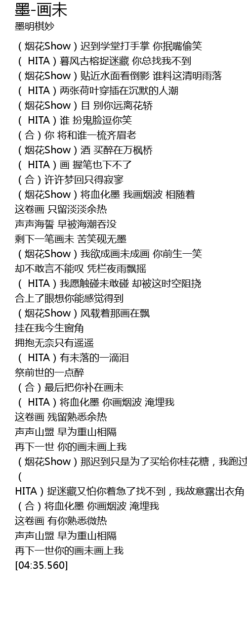 | [03:12.500] | ( HITA)将血化墨 你画烟波 淹埋我 |