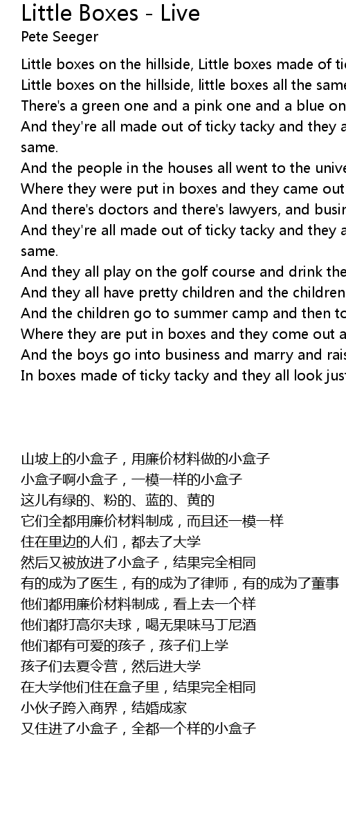 Little boxes on the hillside, Little boxes made of tickytacky |
