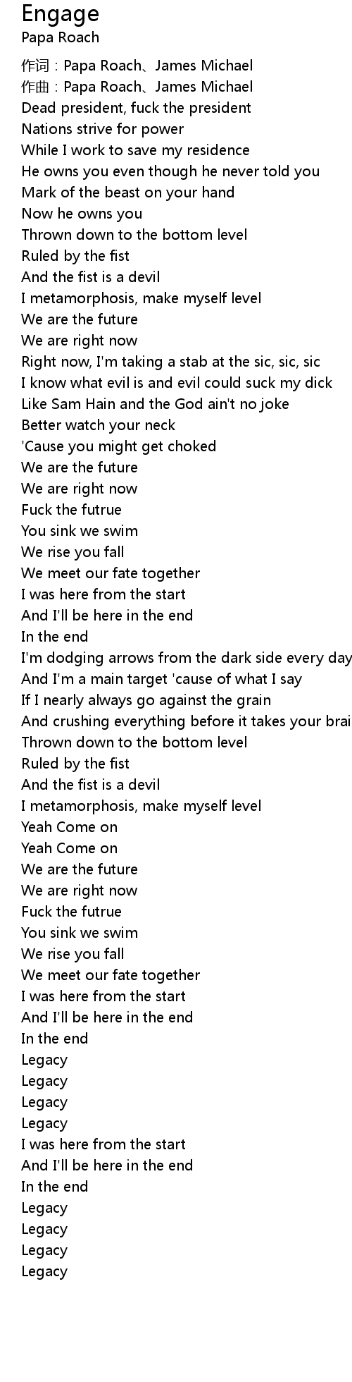 | 作词:Papa Roach、James Michael | |