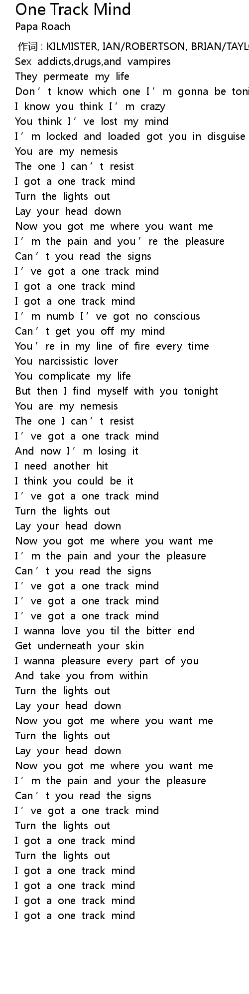 | [00:46.38] | I got a one track mind |