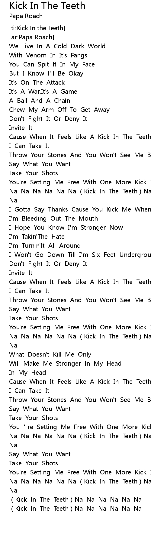 | [02:58.43] | Kick In The Teeth Na Na Na Na Na Na |