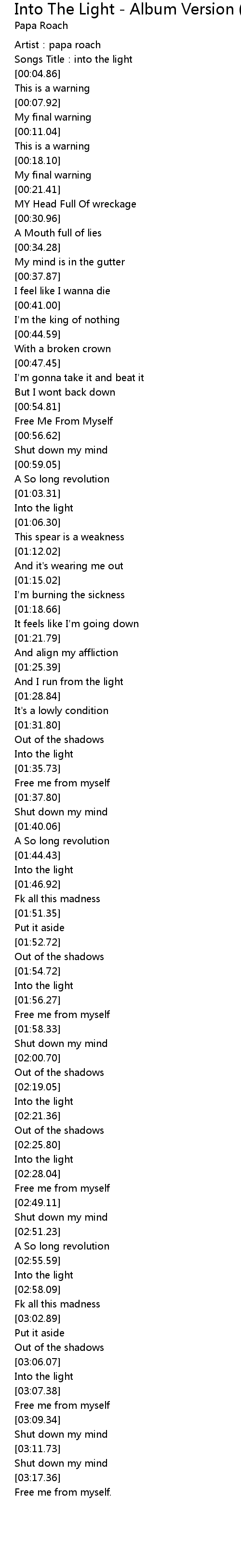 | 歌曲 | Into The Light - Album Version (Explicit) |