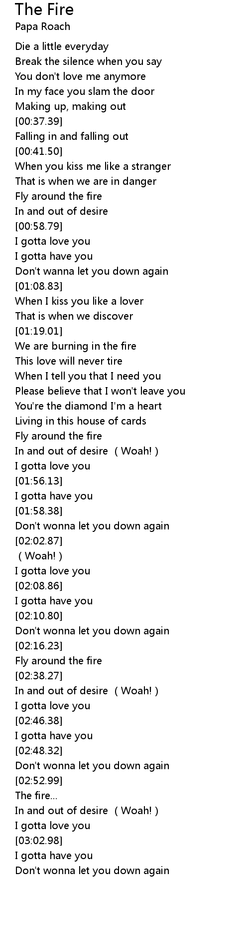 | [01:19.57] | We are burning in the fire |