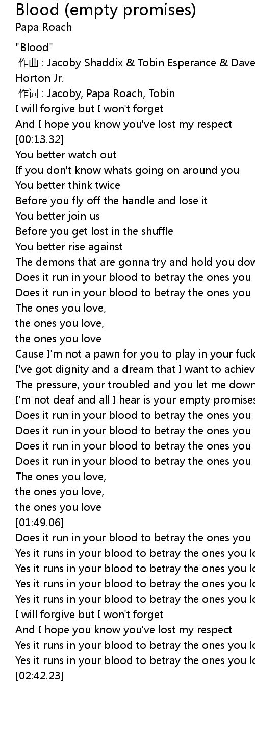 | [01:15.49] | I'm not deaf and all I hear is your empty promises |