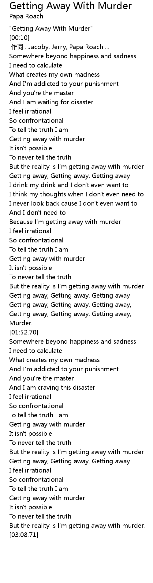 | [00:52.54] | Getting away with murder |