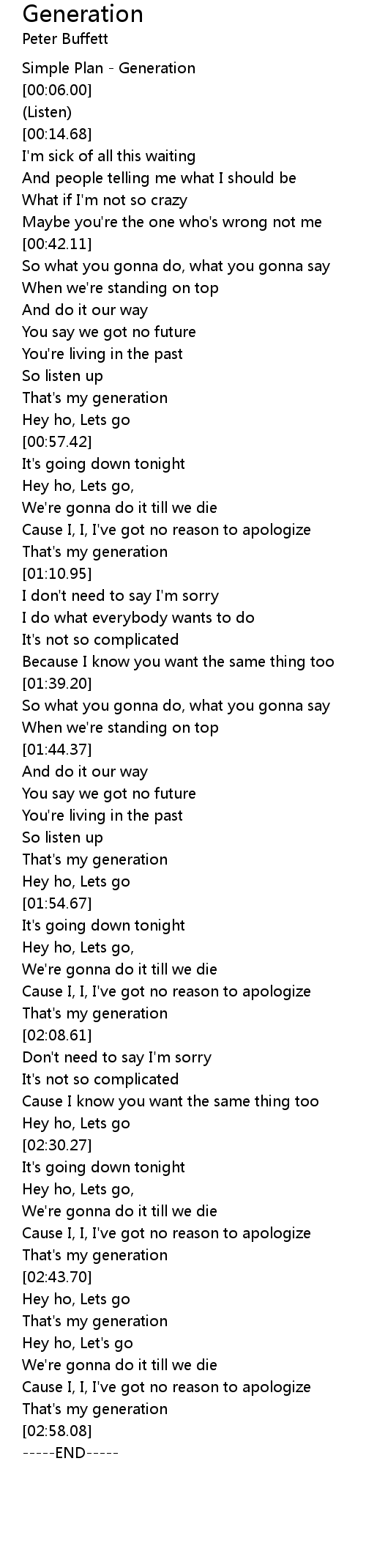 [00:00.00] Simple Plan - Generation