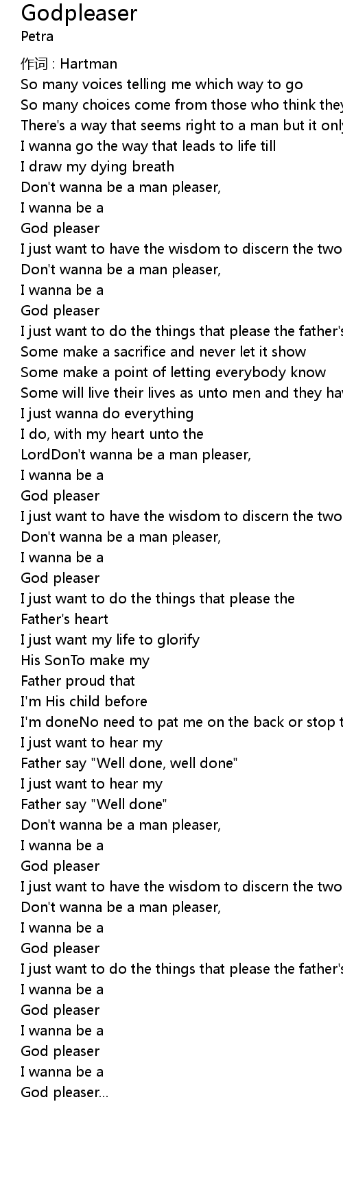 | I just want to do the things that please the father' s heart | |
