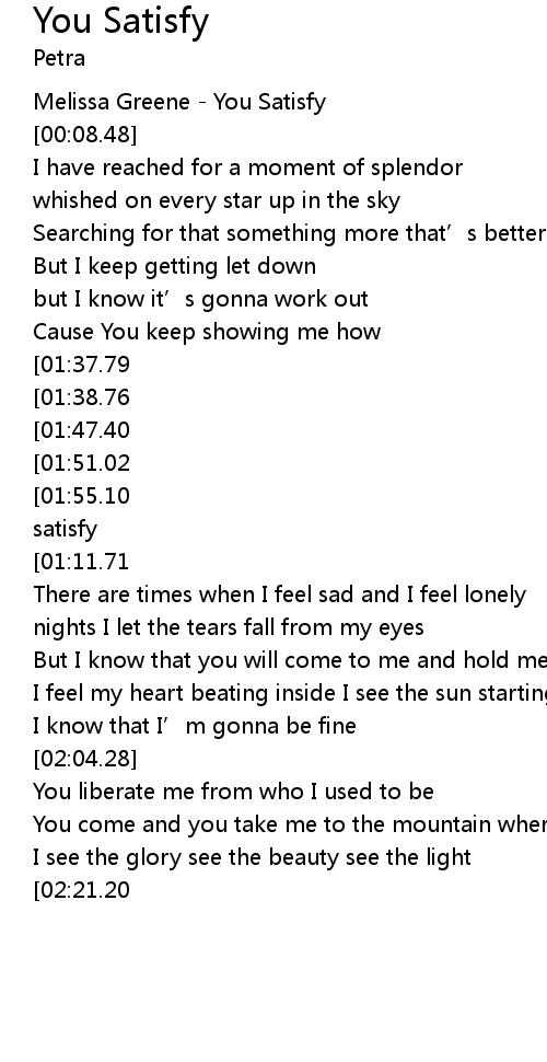 | [02:37.52][01:38.76][00:47.66] | You satisfy when my soul is thirsty |