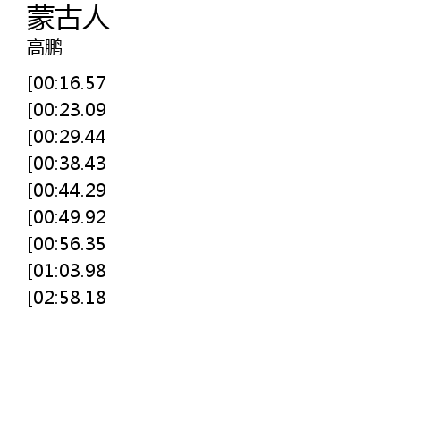 | [03:29.57][02:58.18][01:09.30] | 这就是蒙古人热爱故乡的人 |