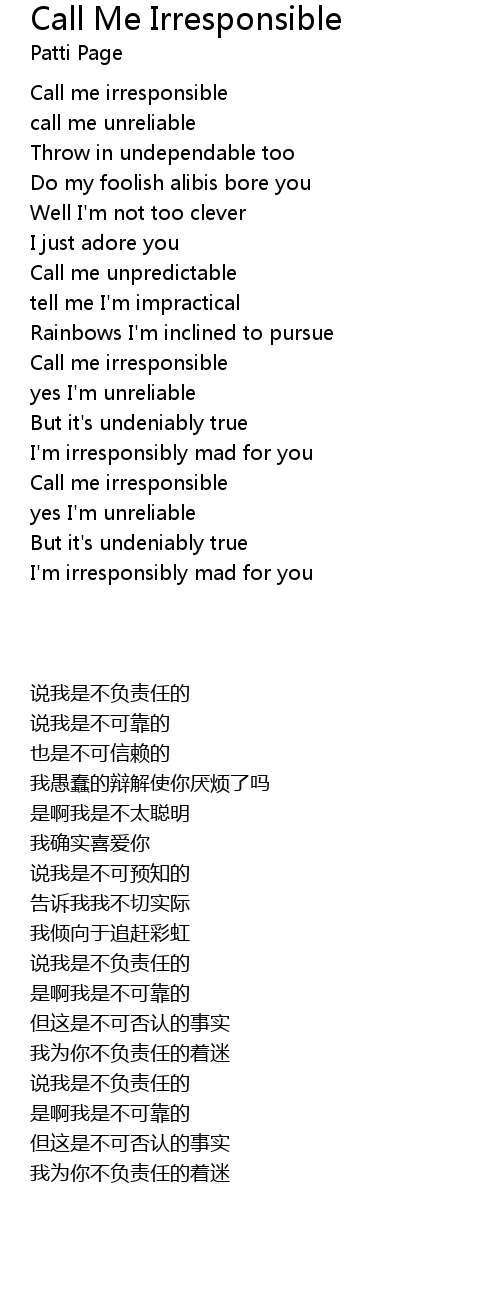 Call Me Irresponsible 歌词