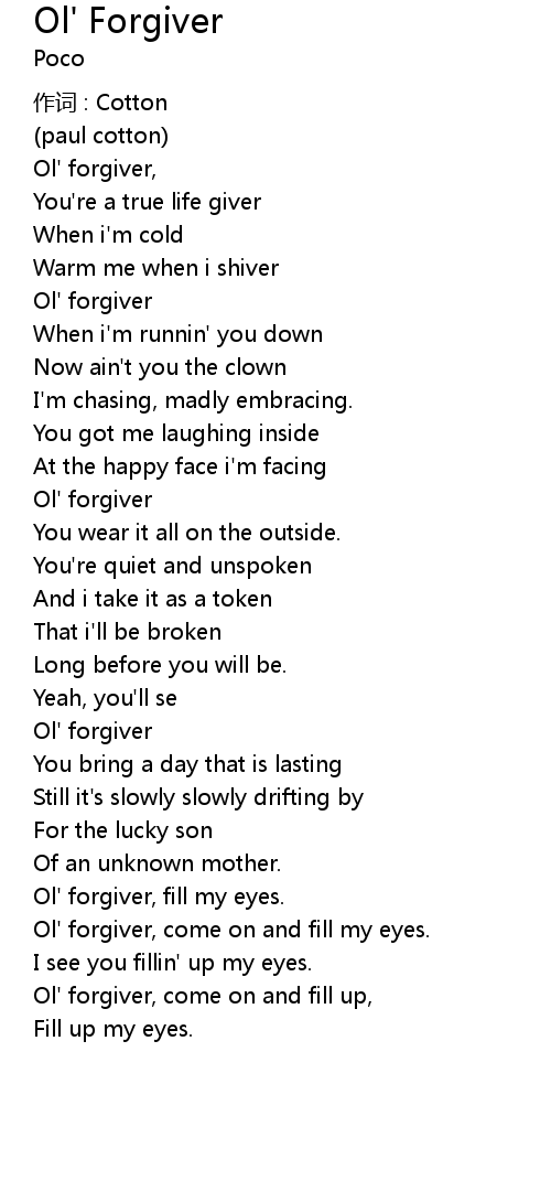 | 歌曲 | Ol' Forgiver |