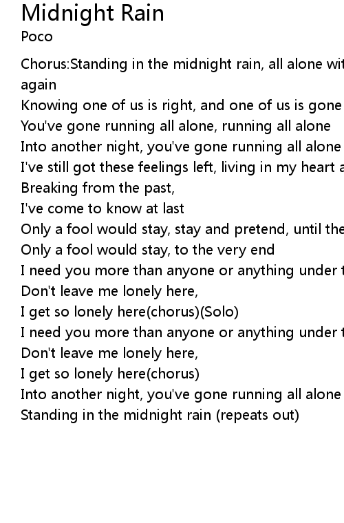 Standing in the midnight rain (repeats out)