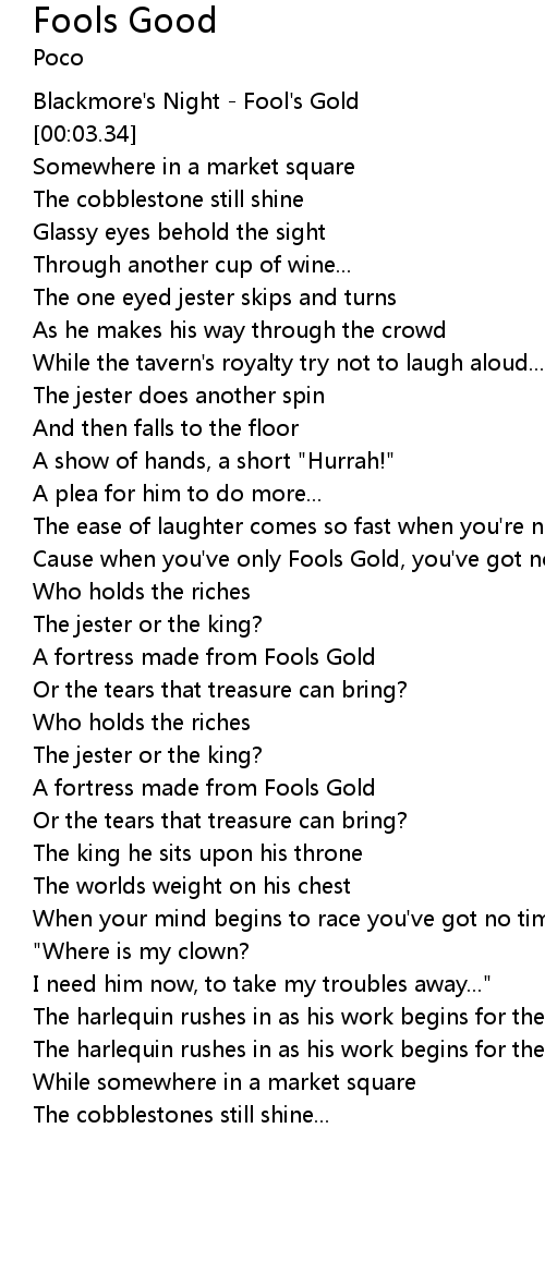 [01:10.73] Cause when you've only Fools Gold, you've got nothing more to lose...