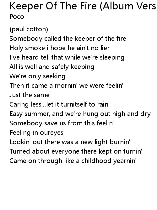 | Somebody called the keeper of the fire | |