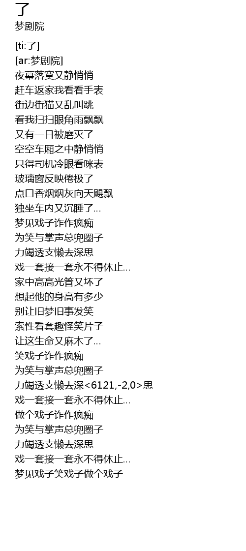 | [03:02.615] | 梦见戏子笑戏子做个戏子 |