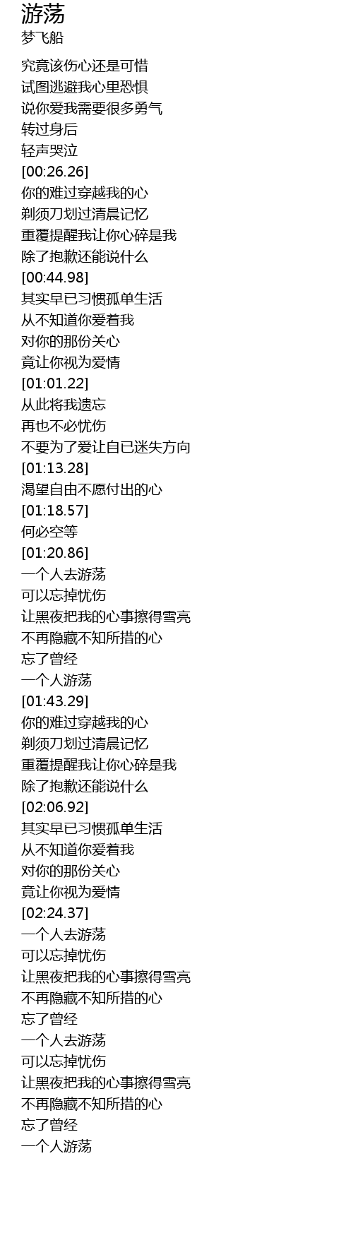 | [02:43.48] | yí ge rén qù yóu dàng |