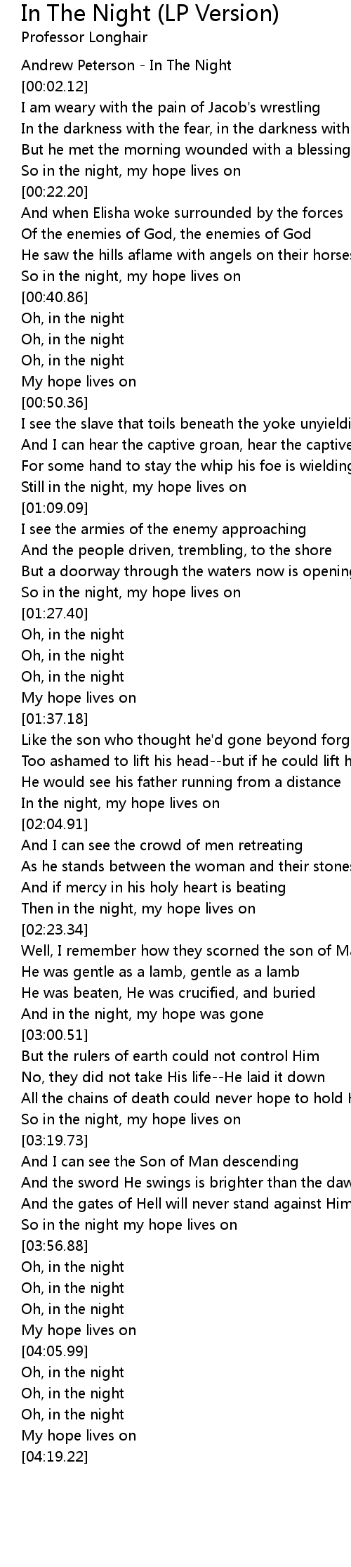 [00:04.64] I am weary with the pain of Jacob's wrestling