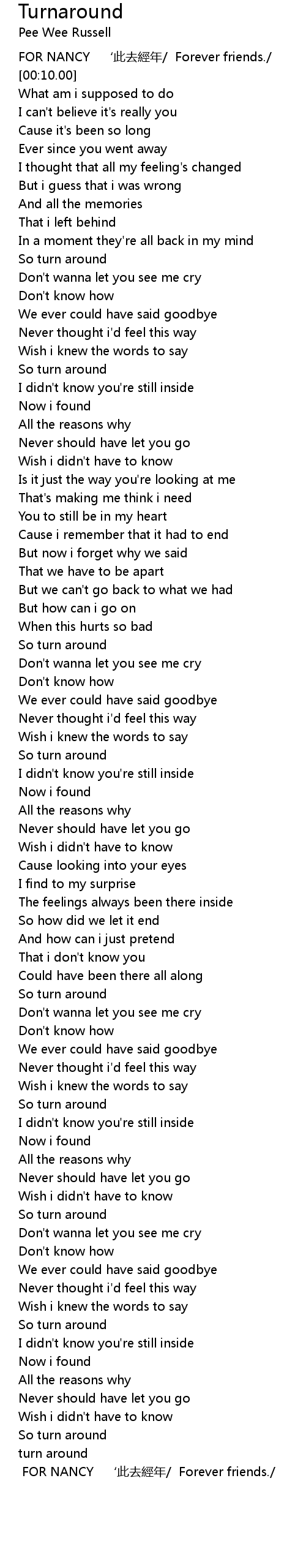 | [04:35.62] | FOR NANCY ' cǐ qù jīng nián Forever friends. |