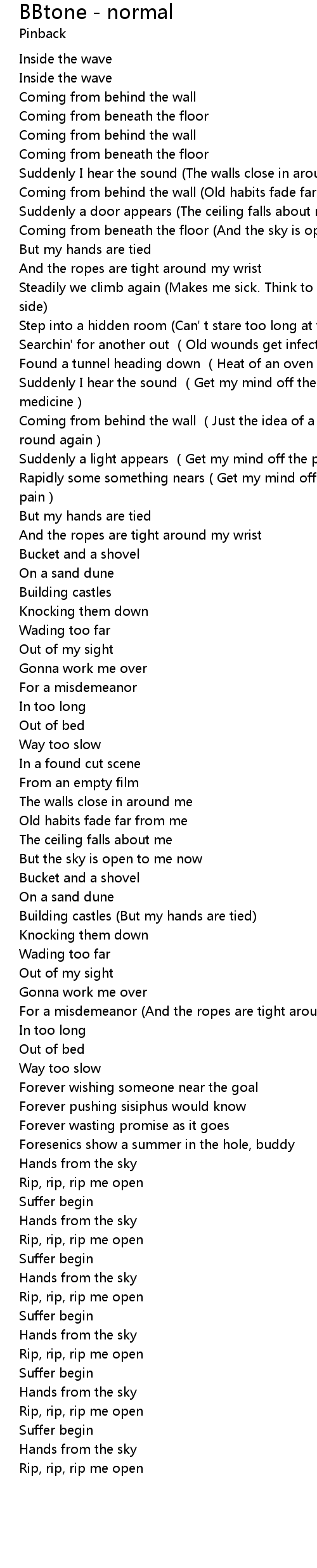 | [00:57.44] | Coming from behind the wall Old habits fade far from me |