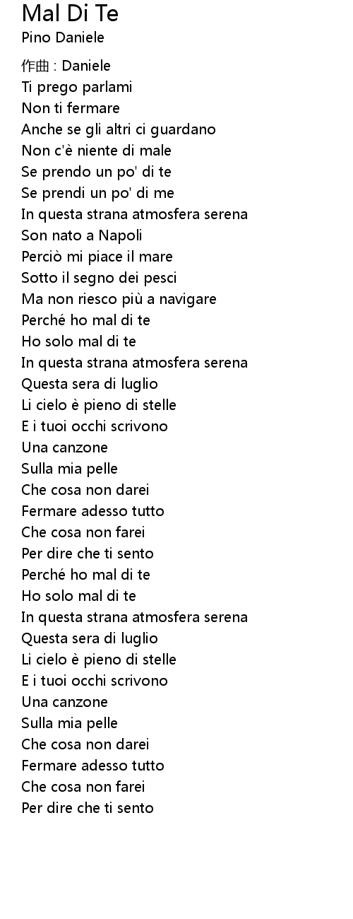 | 歌曲 | Mal Di Te |