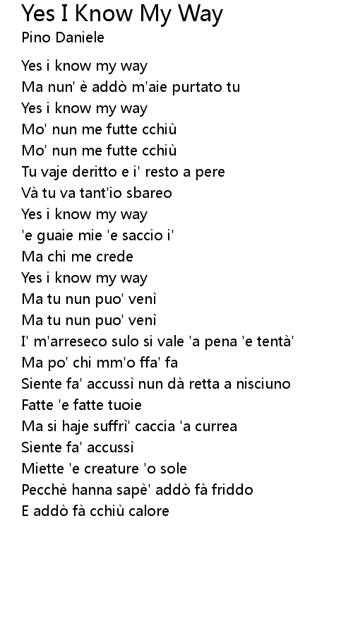 | 歌曲 | Yes I Know My Way |