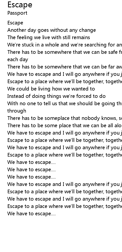 We have to escape and I will go anywhere if you just lead the way |