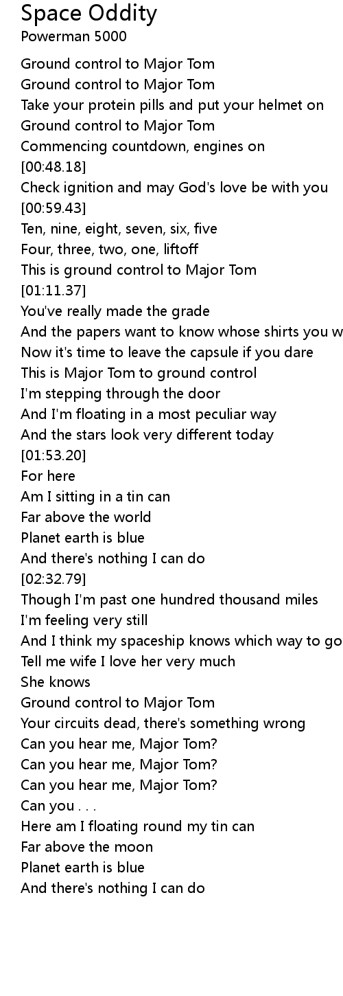 This is ground control to Major Tom |