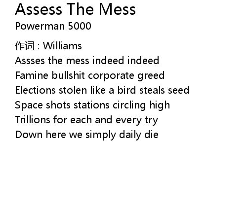 | 歌曲 | Assess The Mess |