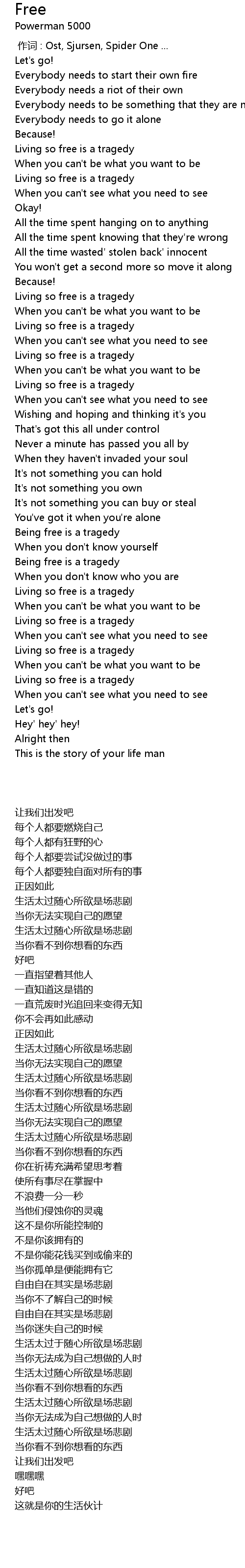 | [00:00.00] | 作词 : Ost, Sjursen, Spider One ... |