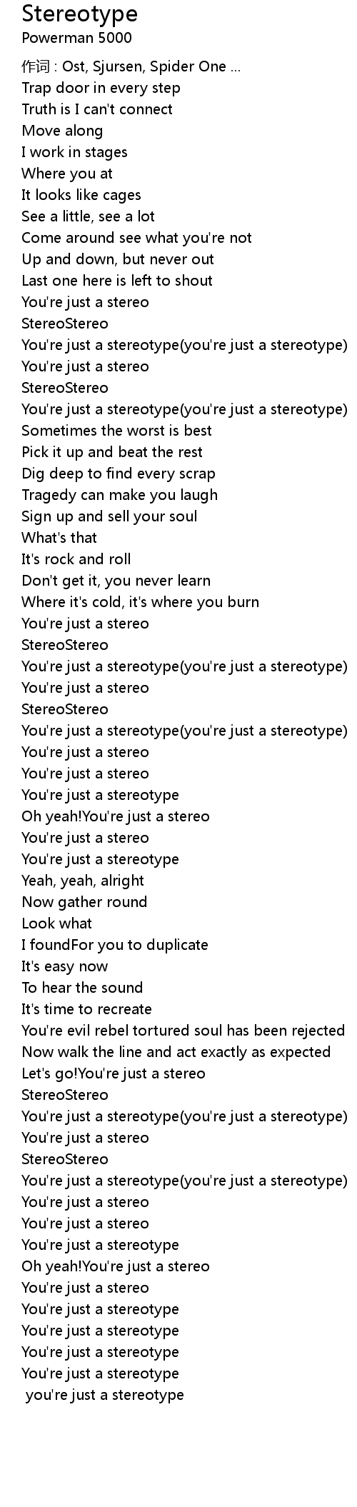 | You're just a stereotype[in reverse:] you're just a stereotype |
