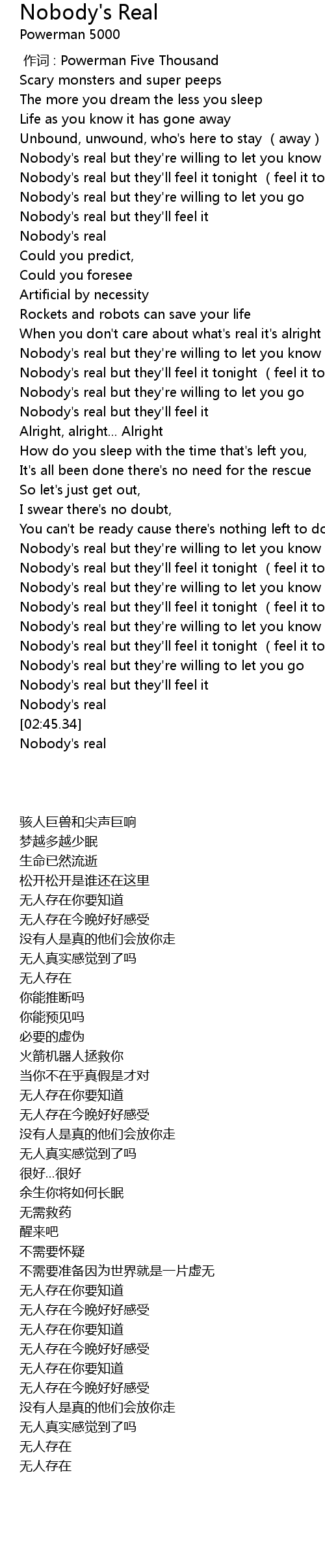 | [02:32.46] | Nobody' s real but they' ll feel it |