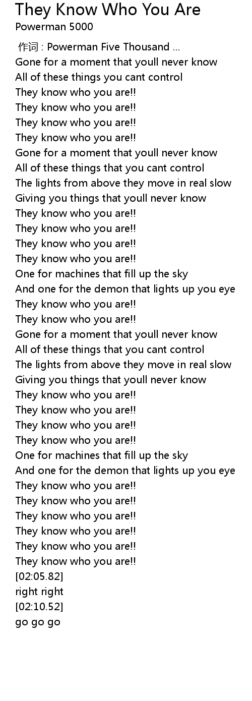 | [00:59.44] | They know who you are!! |
