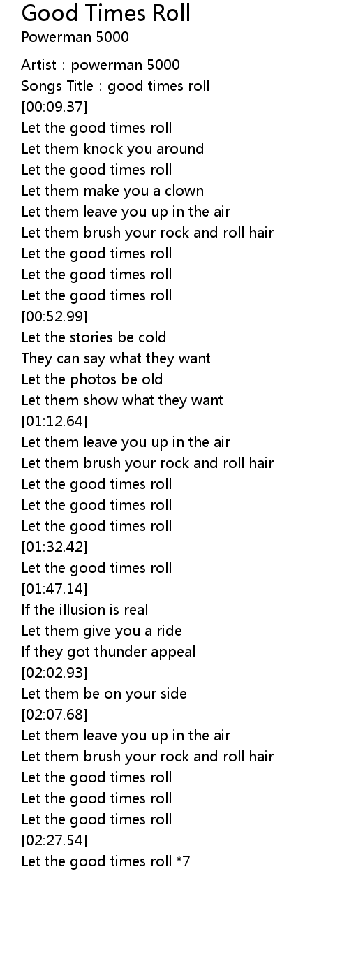| [00:47.68] | Let the good times roll |
