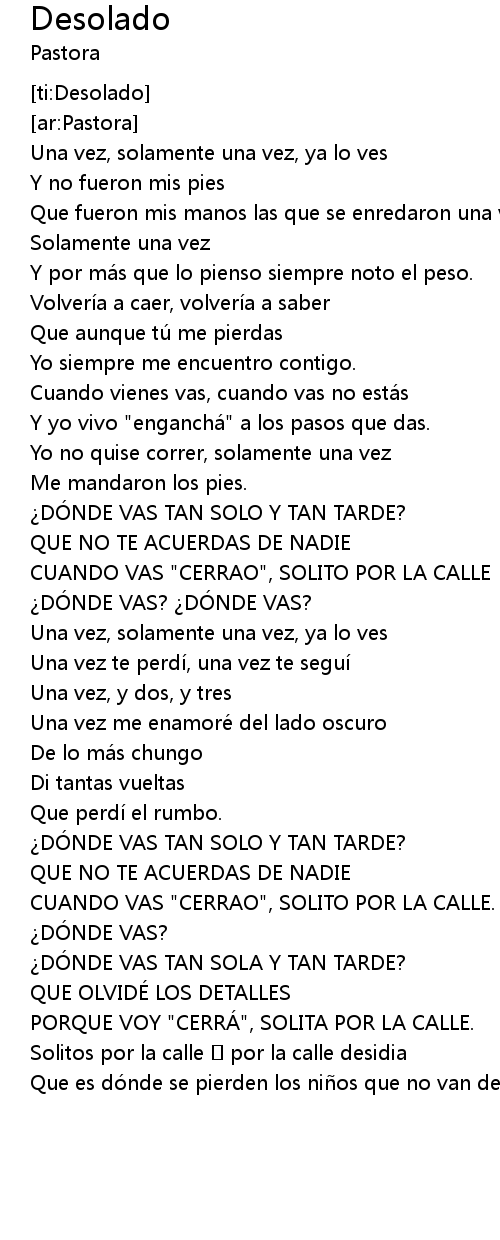 | [03:23.62] | ¿DÓNDE VAS TAN SOLA Y TAN TARDE? |