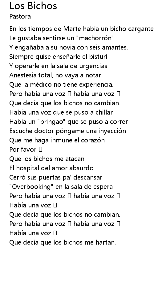 | 歌曲 | Los Bichos |