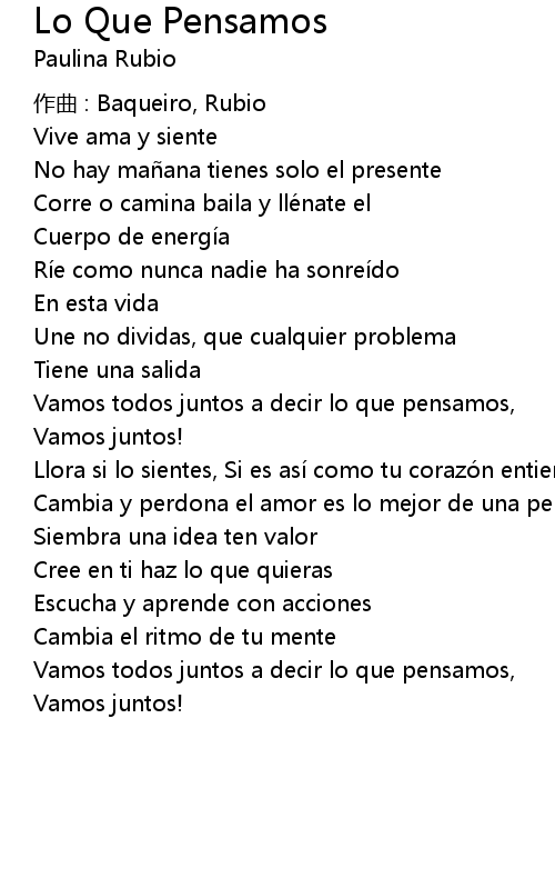 | 歌曲 | Lo Que Pensamos |