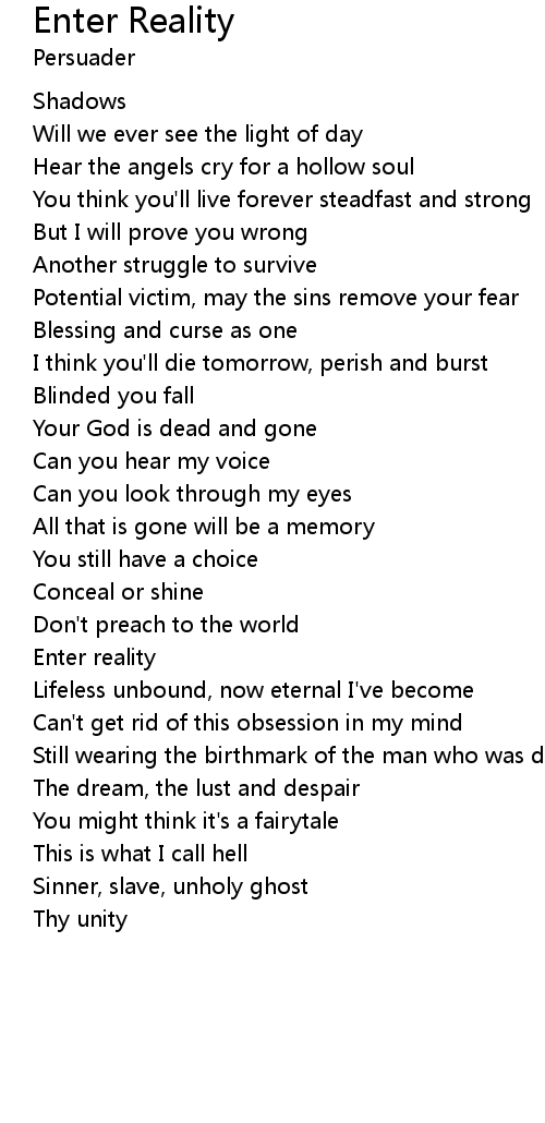 Enter reality |