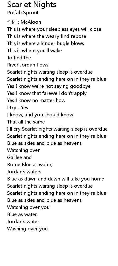 | I'll cry Scarlet nights waiting sleep is overdue | |
