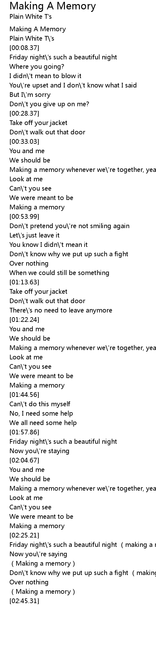 | [00:50.07] | Making a memory |