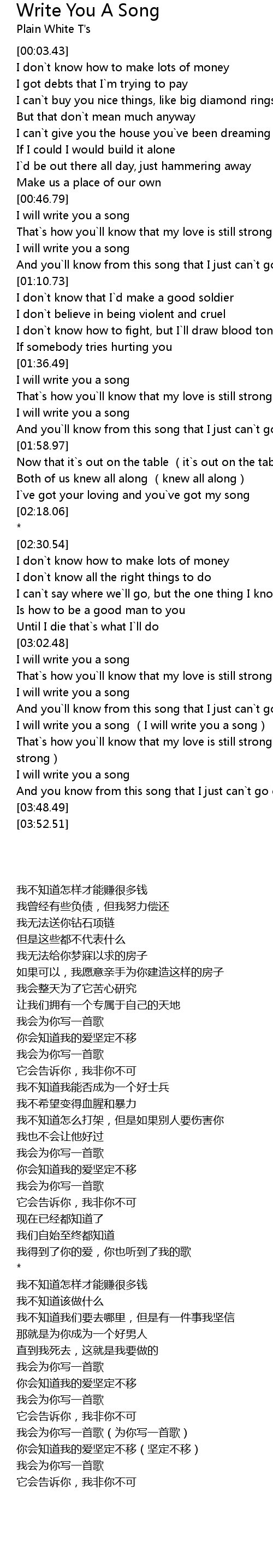 | [03:24.29] | I will write you a song (I will write you a song) |
