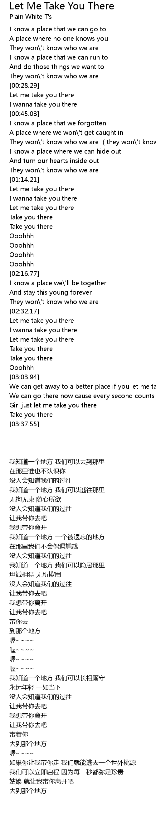 | [03:04.03] | We can get away to a better place if you let me take you there |