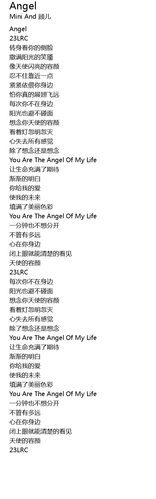 | [03:06.92] | You Are The Angel Of My Life |
