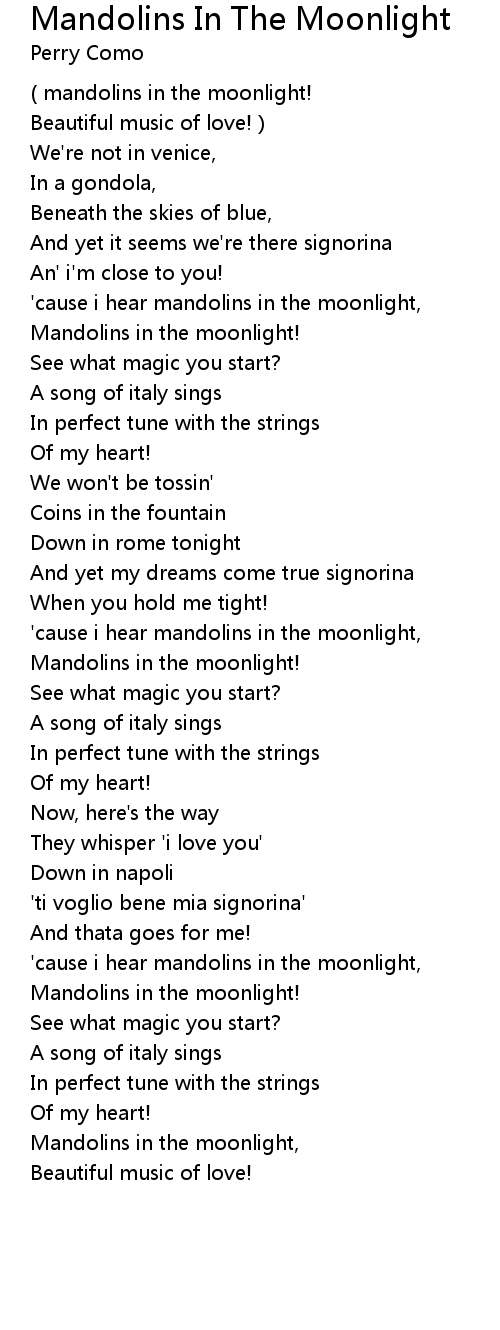 'cause i hear mandolins in the moonlight, |
