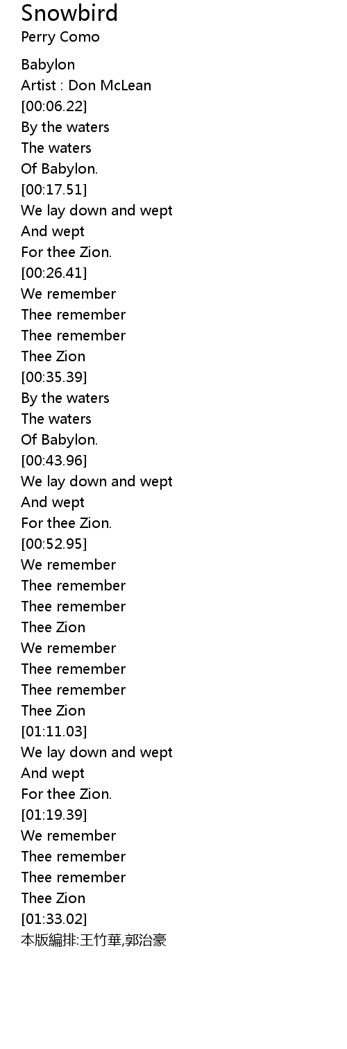 | [01:34.91] | 本版編排:王竹華,郭治豪 |