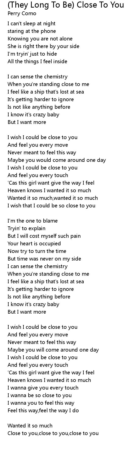 | Close to you, close to you, close to you |